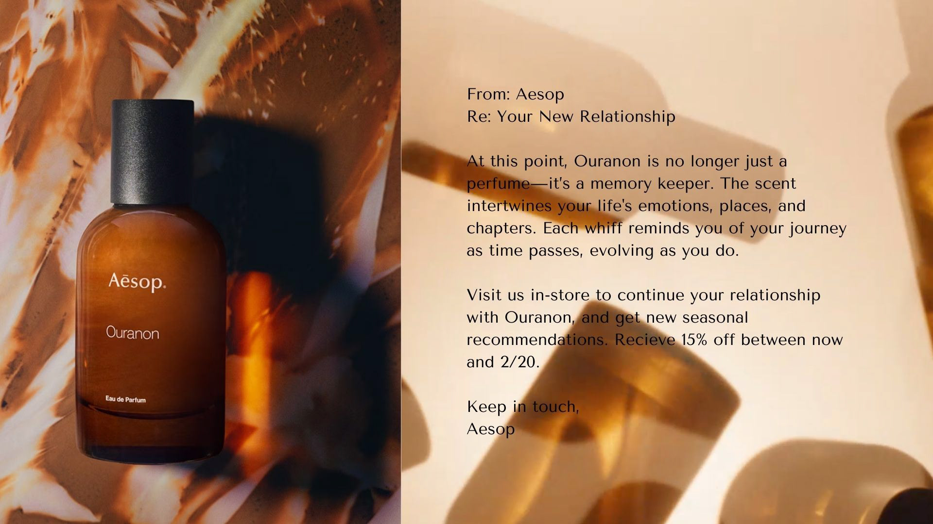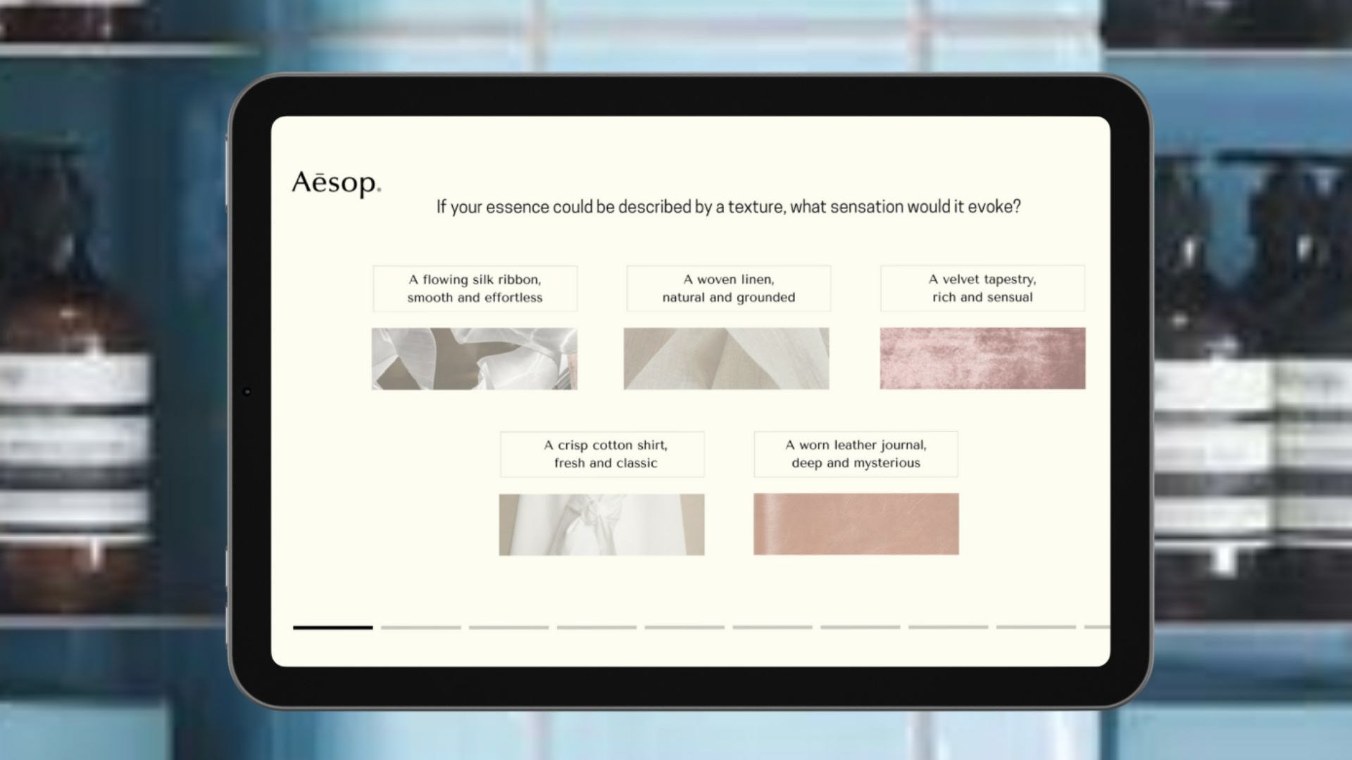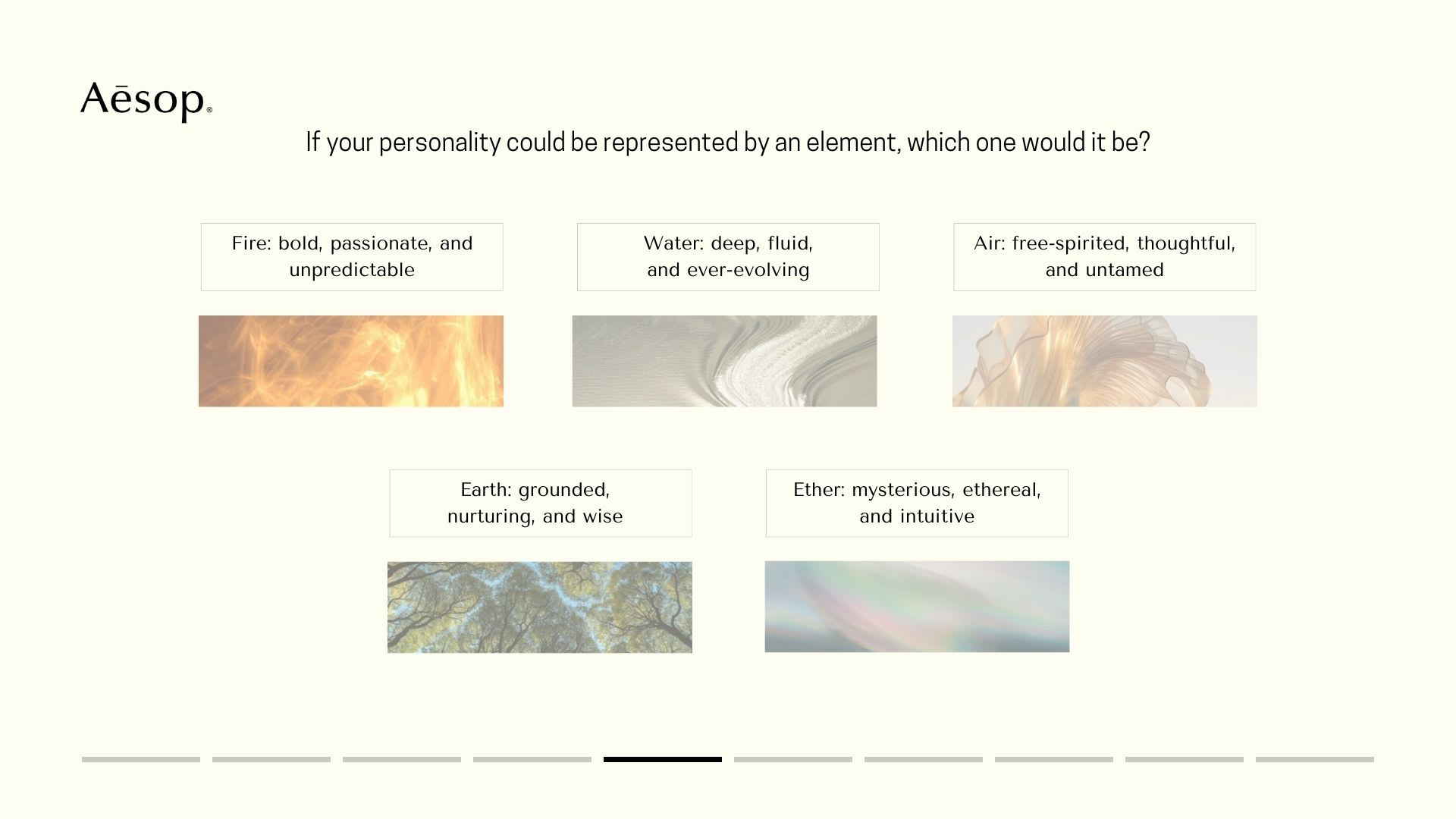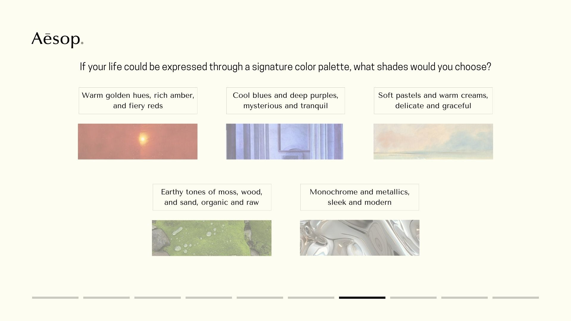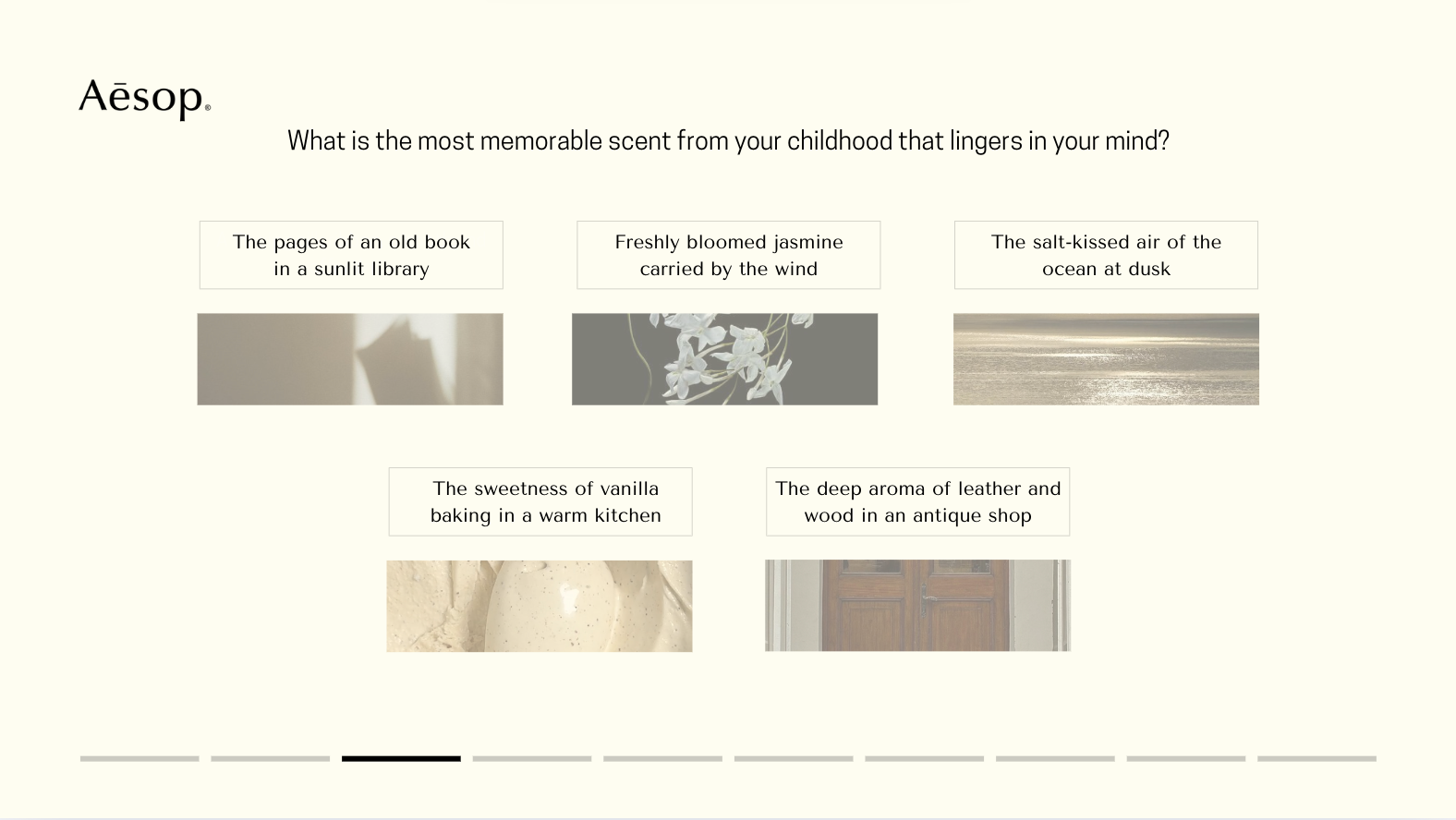 For SCAD ADBR 255, we were tasked to incorporate an interactive element within an existing brand, ensuring it fills a gap within the market. I created an interactive psychology-based scent assessment for Aesop fragrances, ensuring each fragrance chosen "aligns with the fabric of your being".