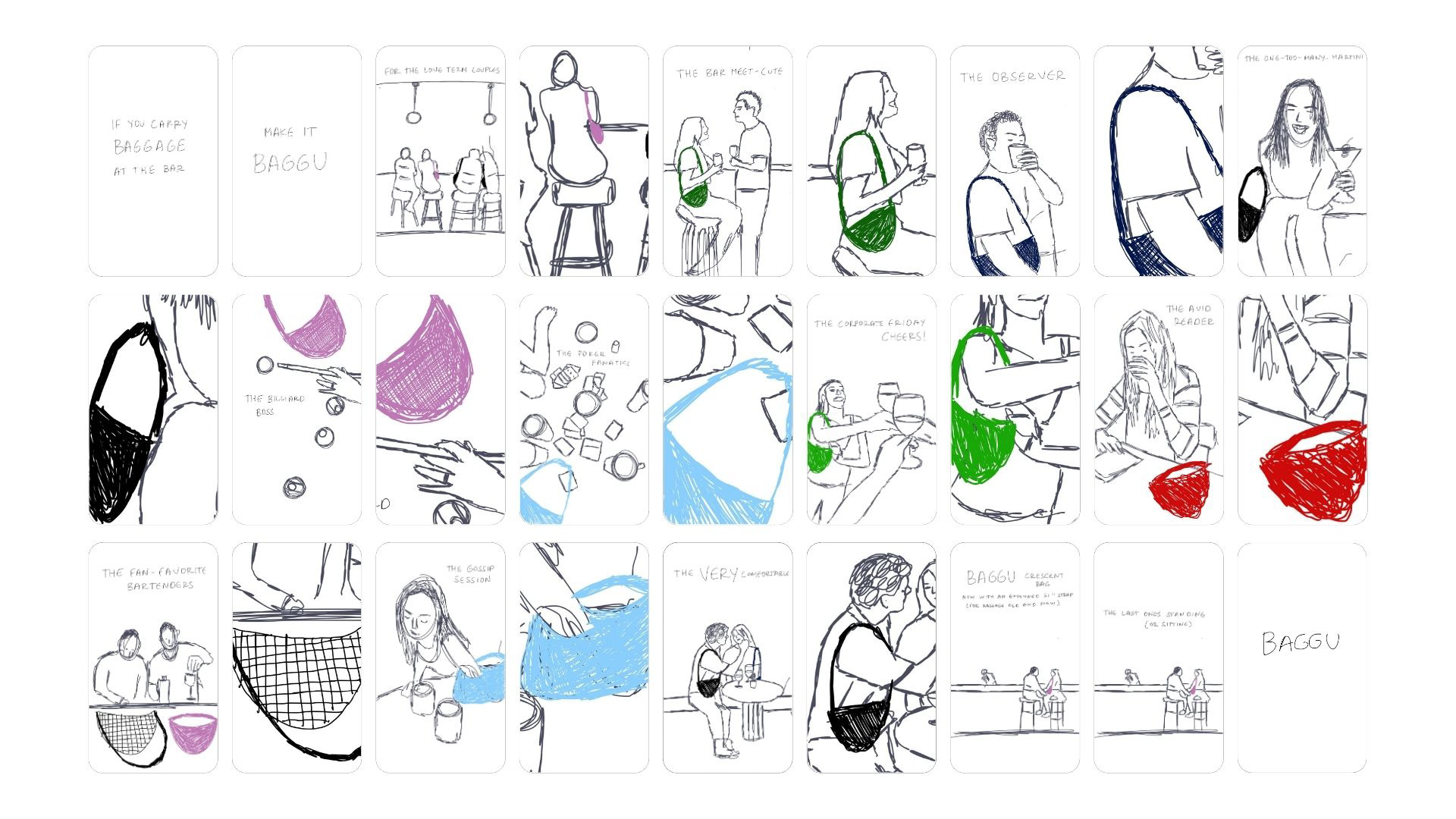 SCAD ADBR 205 - Building and Expressing an Immersive Brand Narrative for a TikTok for BAGGU through Story Boarding and a concept statement.