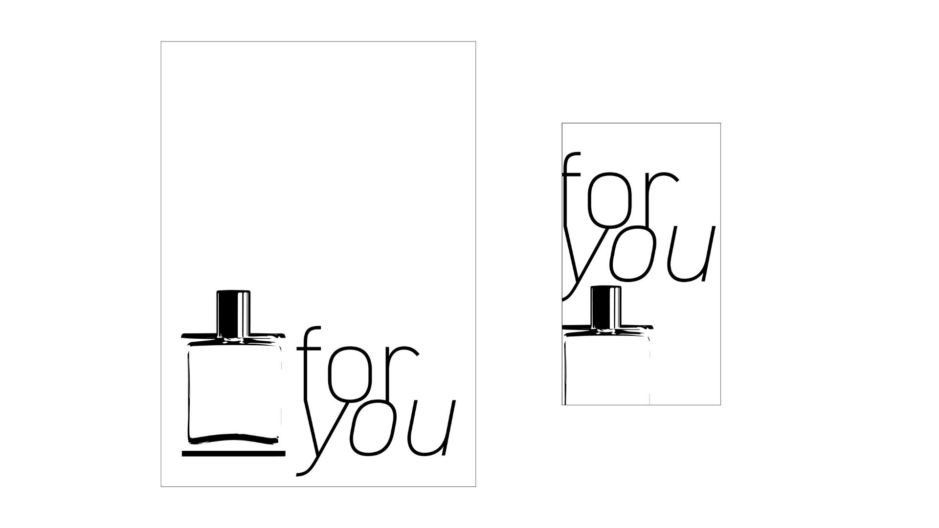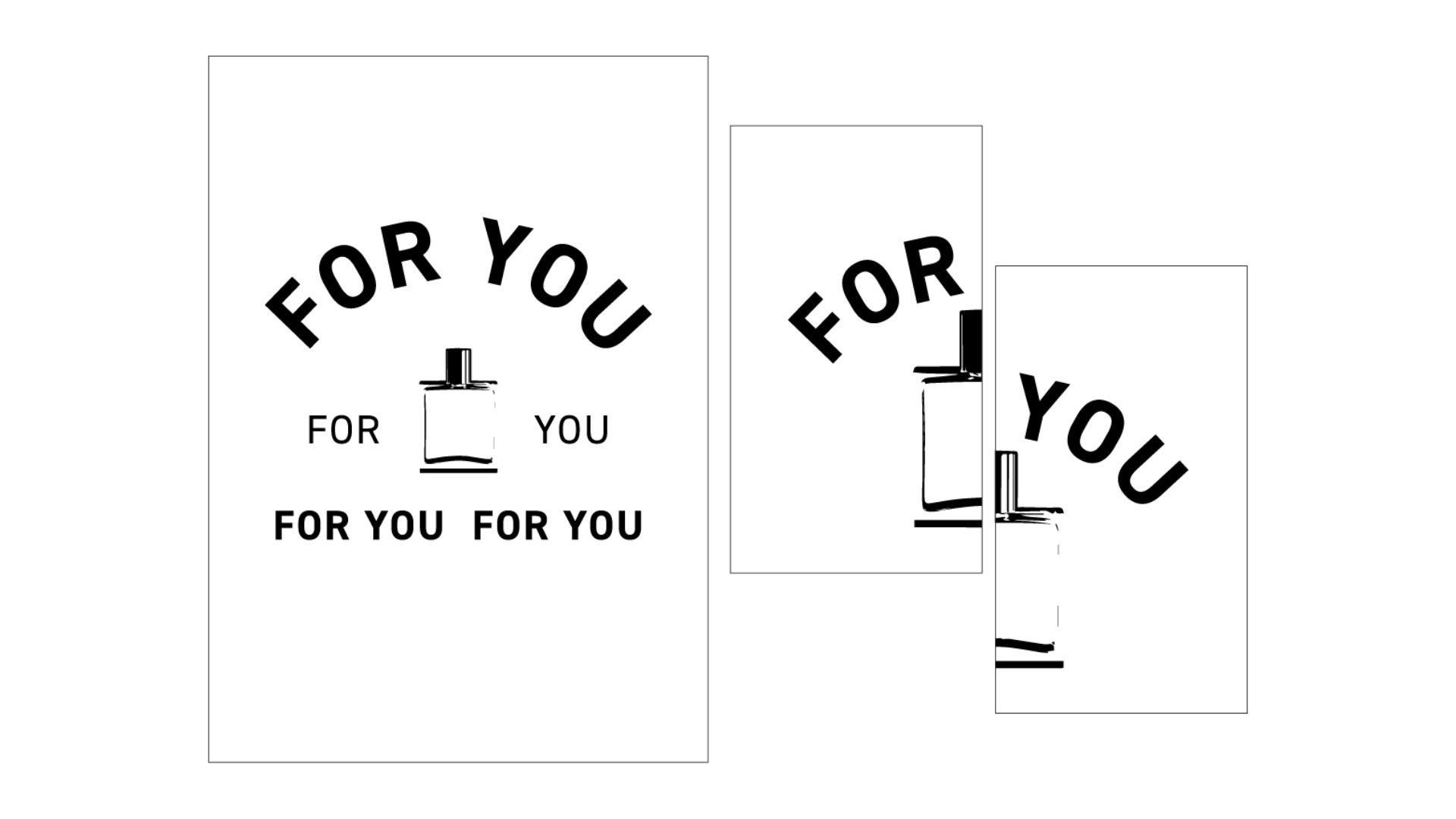 SCAD ADBR 252 Classwork, focusing manipulating only three elements: DIN 2014 typeface, "For You," and a bottle to create three different campaigns based off of three separate scenarios as follows: