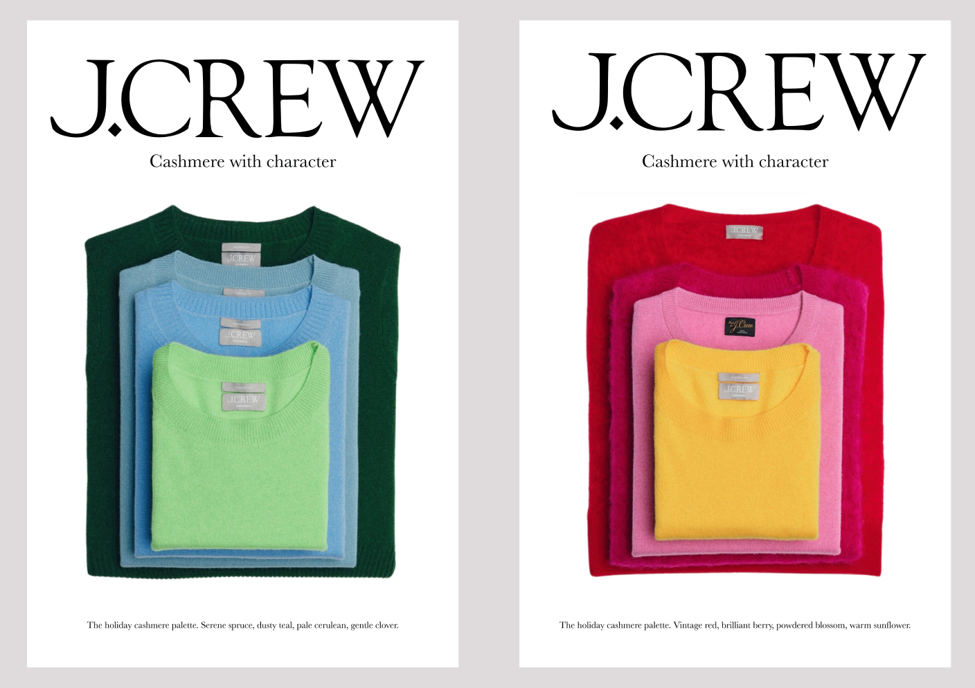 SCAD ADBR 205 work, reverse engineering an advertisement and creating a creative direction brief from those findings. I chose J.Crew's Josef Albers' 2024 Fall campaign.