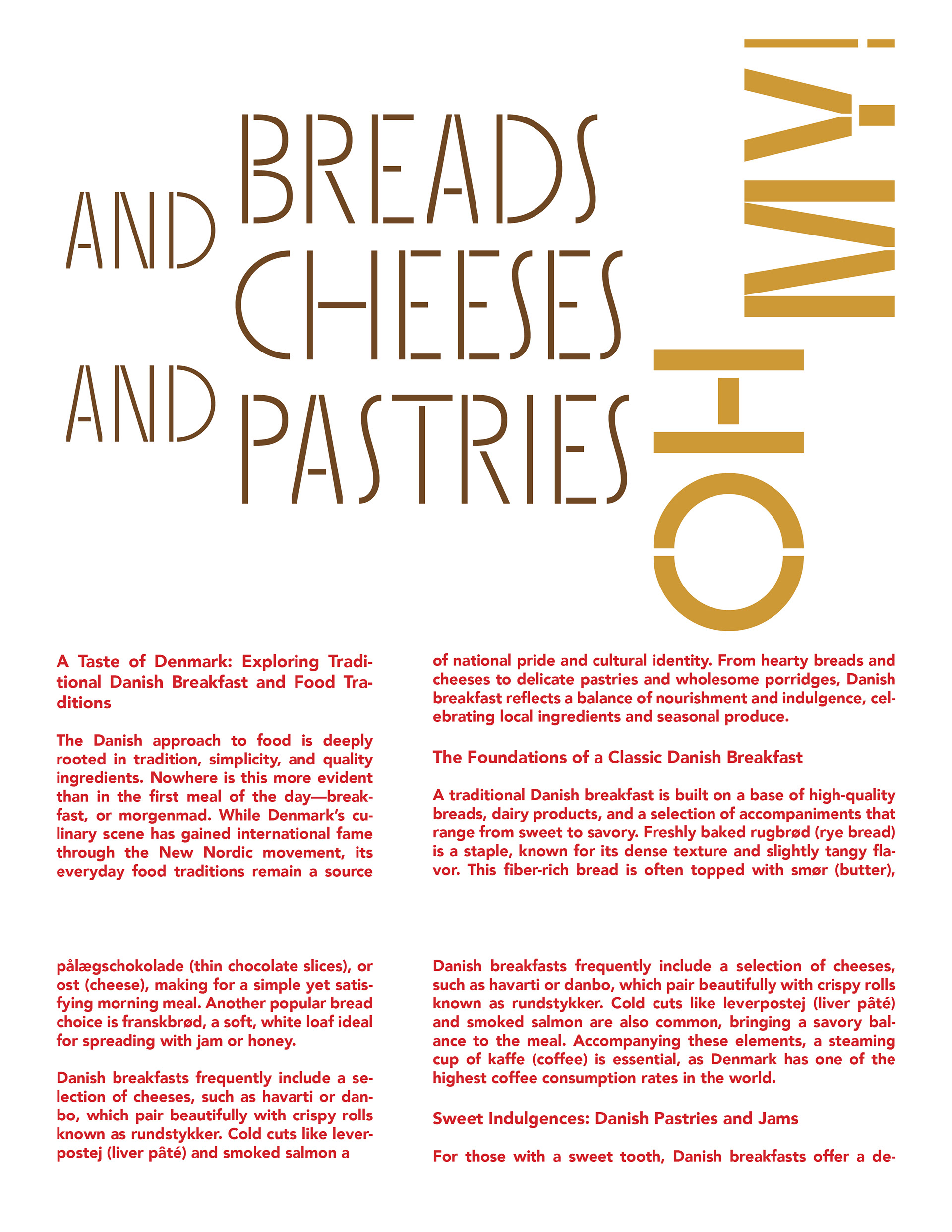 Our challenge was to create a magazine about a niche topic, so I chose my love for the color red. I used photos I had taken while traveling, and performed type exercises with different typefaces to match each spread.